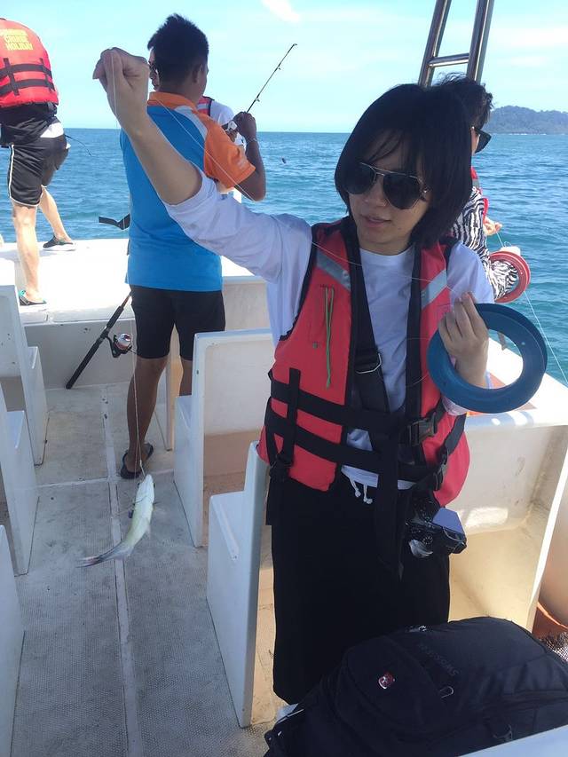 坐了将近30分钟的快艇到达深海区域,开始发钓杆,才开始10多分钟,就钓到了小鱼