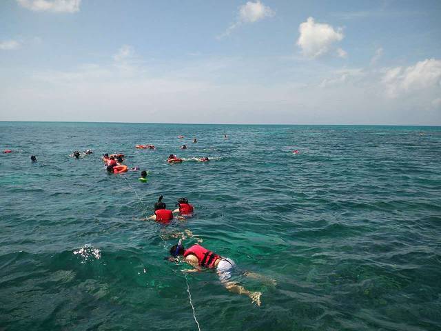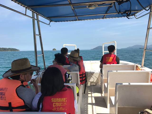 这次行程中最喜欢的项目就是环滩岛的浮潜,乘坐将近1小时快艇,到达目的地,导游带领大家参观自助餐厅后,定好各自的午餐位置,便带我们乘坐快递,在环滩岛附近的2个不同的海域浮潜,第一处海水清澈,鱼群非常多,不需要喂食,潜下去就可以看到大群的鱼,我们还看到了小丑鱼,妹带了go pro,全程自己摄像。各色形状各异的珊瑚群,太美啦,看得都不想抬头。换到第二个潜伏点,水相对没有那么清澈,导游说第二处主要看海龟,在艇上看到了,下水后木看到,鱼也不太多,8过珊瑚群很美。