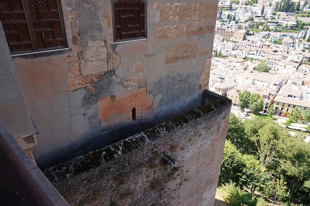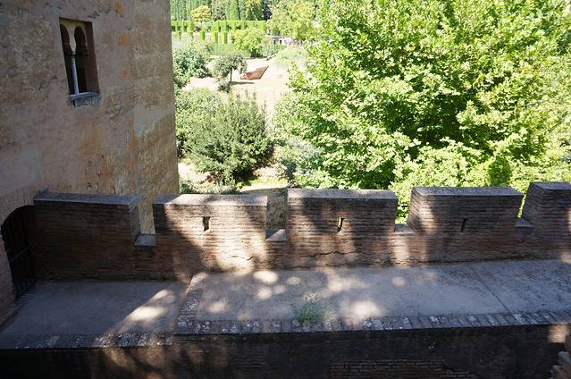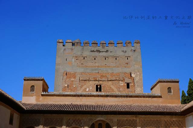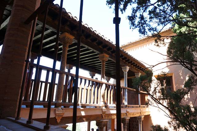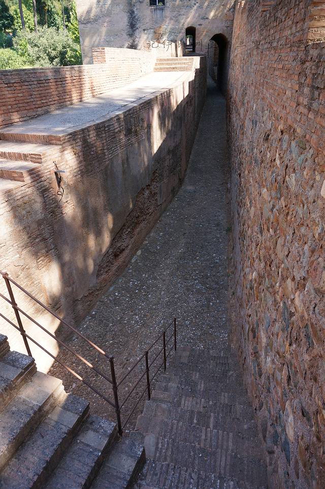 阿尔汗布拉宫是军事防御与宫廷的结合,城中处处有城堡和兵营的遗迹,与故宫相比,其实在这里军事化要塞的成分要多得多。这座三层连廊就是宫中苏丹及其士兵们监视格拉纳达臣民和外来入侵者的绝佳瞭望地。
