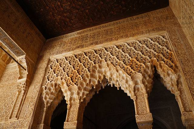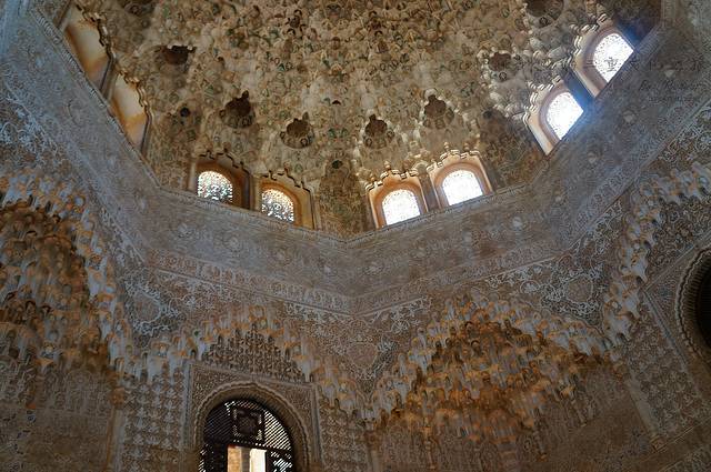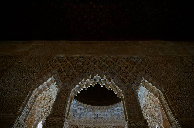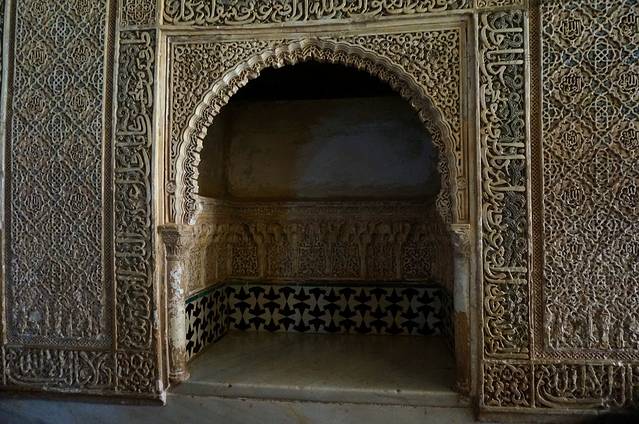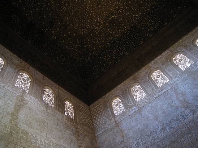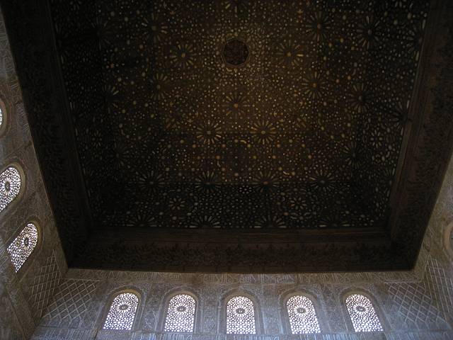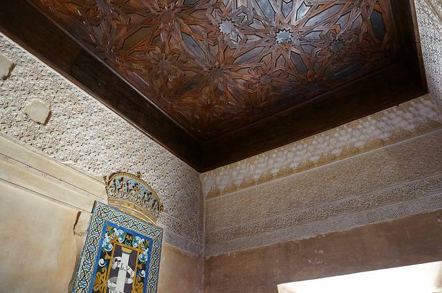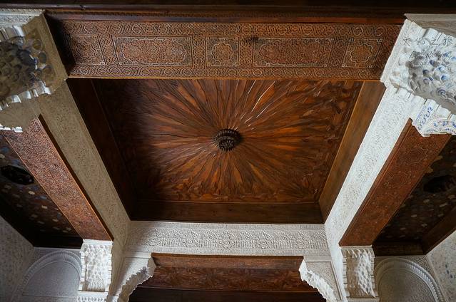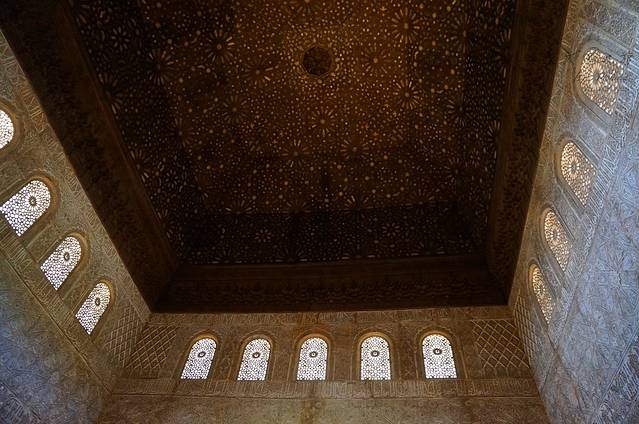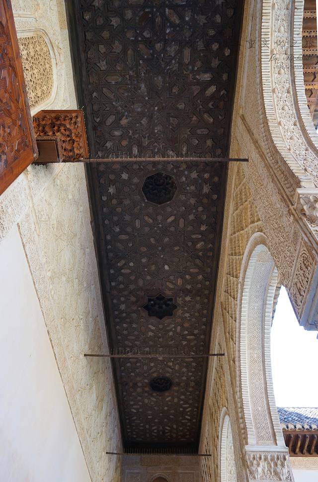 梅苏亚尔宫是格拉纳达苏丹行使司法权的地方,因此这座并不宽敞的四方形宫殿,整体呈现幽暗肃穆,局促压抑的氛围。宫内雕刻精美的窗楣,花窗,木雕的顶棚,无不体现出浓重的伊斯兰风格。