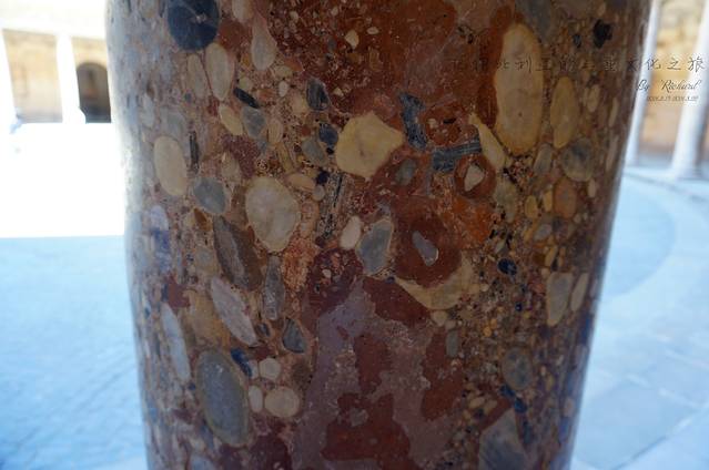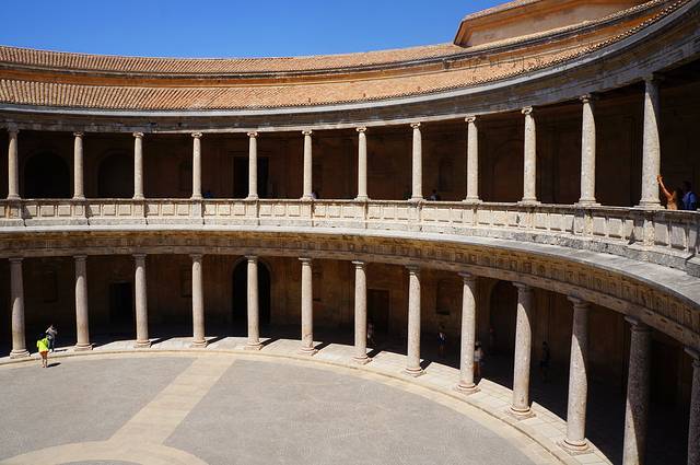 宫殿的圆形庭院分上下两层结构,无论从哪个角度观赏都令人赞叹不已。庭院两层环廊各有32根石柱支撑,这种建筑风格在文艺复兴时期曾被广泛流行。据说此后的西班牙斗牛场就是依照此建筑而建造的。