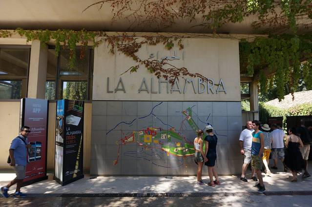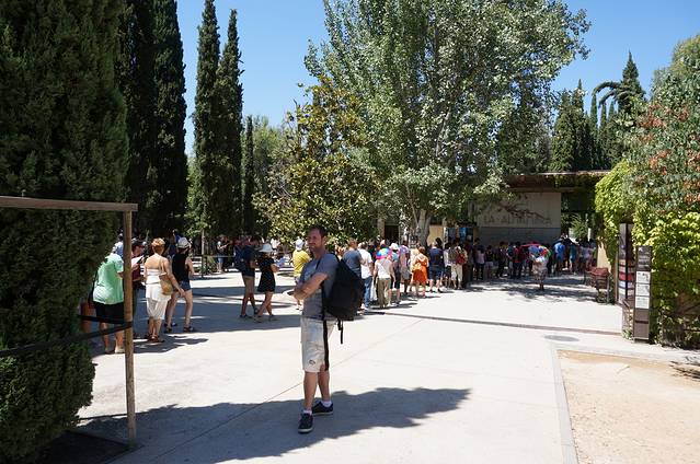 怀着对于这段历史的神往,我们下午14:30准时来到阿尔罕布拉宫的入口处。令人意外的是虽然格拉纳达夏天午后的烈日分外强烈,但是仍挡不住来自世界各地游客的参观热情。这个时候等待入园的游客已排起长龙。