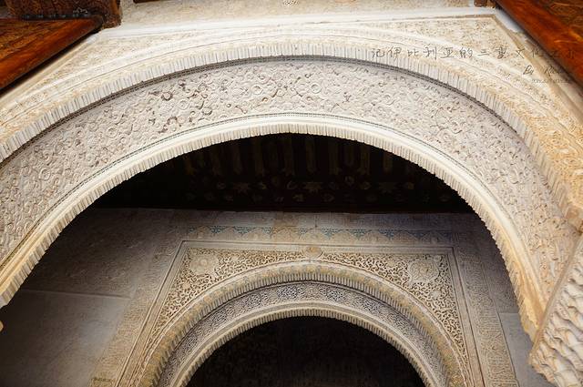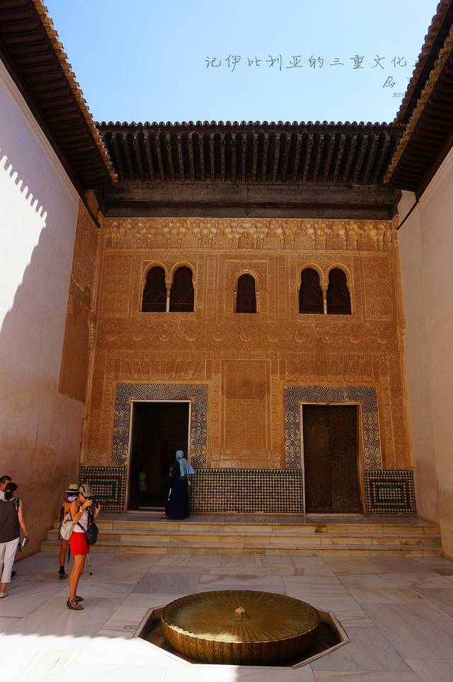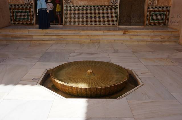 国王厅的顶面和墙面的石雕布满了门楣和天花板,犹如喀斯特地貌形成的溶洞般极尽繁复和精美的图案。在这里浓重伊斯兰风格的雕刻充斥着墙壁,而随处可见的喷泉和水槽,时刻跟随我们的步伐流淌在庭院、走道和大厅。