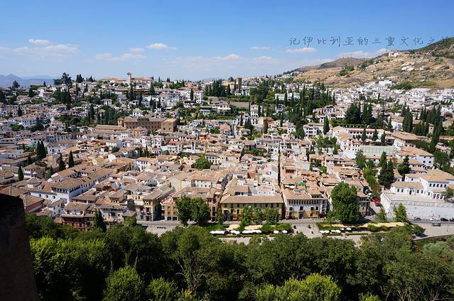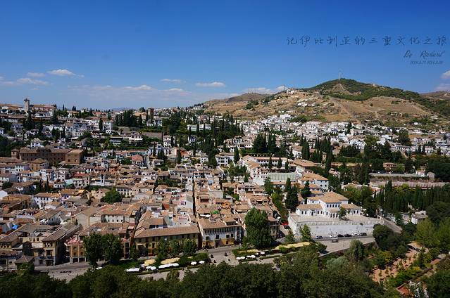 我们从阿尔罕布拉宫所在的山丘俯瞰至今仍保留摩尔时代风貌的格拉纳达阿尔拜辛区(Albayzín) 。城区有着迷宫般的小巷和白色的建筑物外墙。展现出来自东方的风韵。难怪雨果曾这样赞美格拉纳达:“没有一个城市,像格拉纳达那样,带着优雅和微笑,带着闪烁的东方魅力,在明净的苍穹下铺展”。