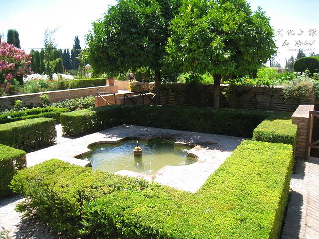 根据行程的安排,我们在进入阿尔罕布拉宫之前,先行参观格拉纳达苏丹(在伊斯兰教历史上类似总督的官职,权力相当于国王)的夏宫——赫内拉利费花园。