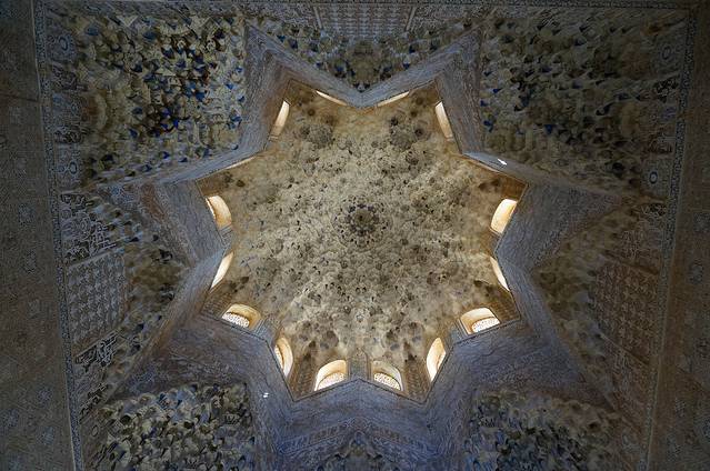 阿宾色拉黑丝厅呈几何形状的天花,它是采用勾股定理做成。摩尔人继承了波斯人追求极致几何图案效果的建筑习惯。阿宾色拉黑丝厅的方墙、穹顶、圆塔装饰图案都用精确的几何形状构筑,并将整个建筑物内部饰面的蜂窝状饰面渲染成鲜艳的色彩。