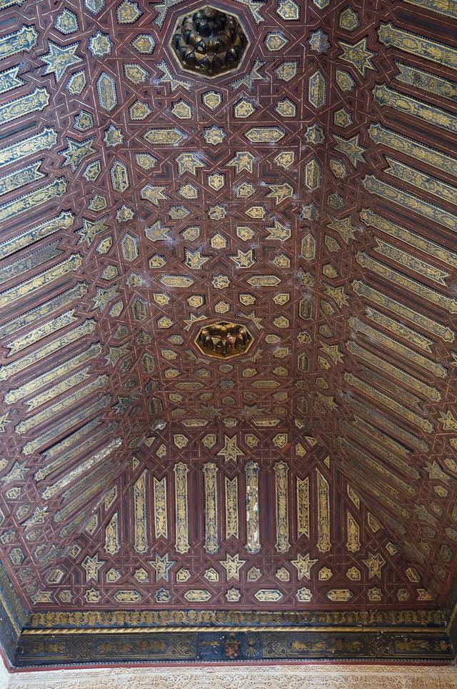 穆德哈尔风格的建筑顶面,以象征富丽堂皇的金色主色调相缀,因此梅苏亚尔宫也被称为黄金屋。