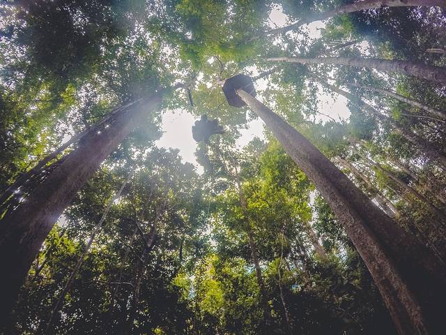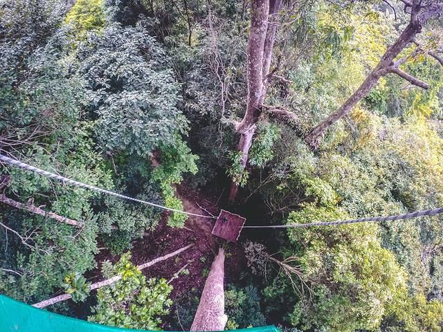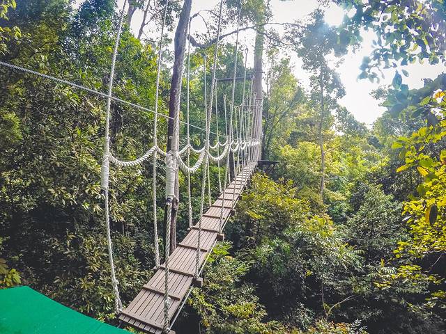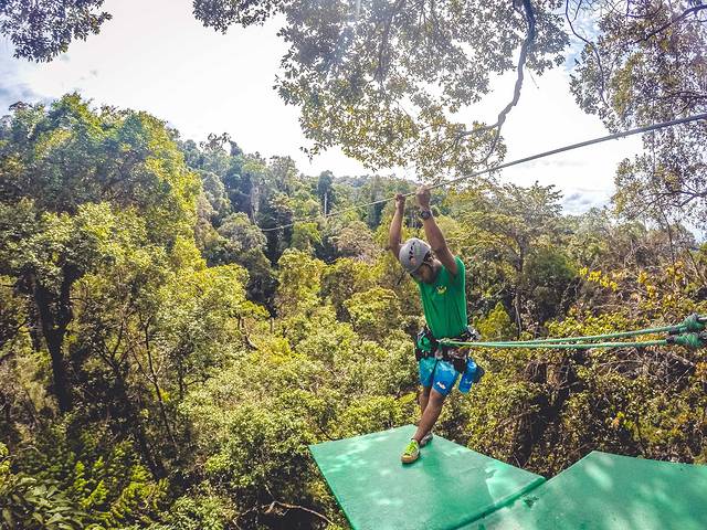 在2.5小时的高空滑索中可以体验12条高空索道、3座天空桥以及1次刺激的沿绳索下滑。