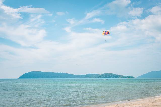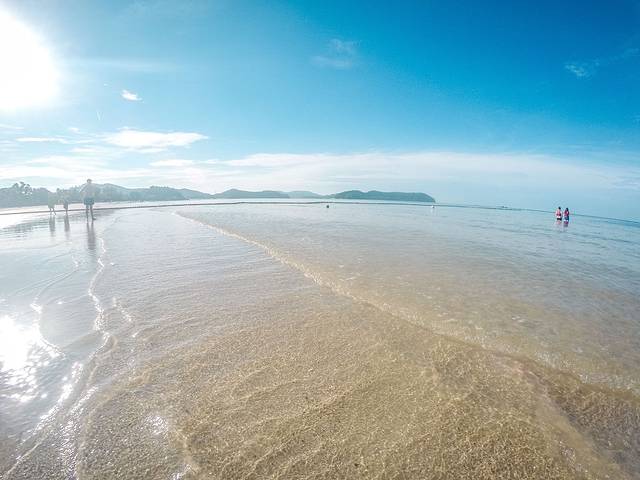早上九点太阳穿过云层出来了,我们开始从兰卡威珍南海滩出发。