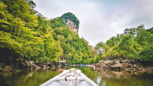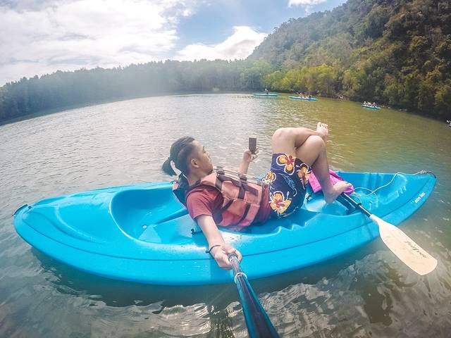 早上突如其来的大雨,让今日的皮划艇有了些担心。在雨中前行乘船去往溶洞观看栖息的蝙蝠。