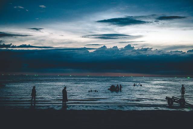 天气一般,没有看到精彩的落日,但是不失望。海滩边的美景一点也不会因没有美丽的落日而逊色。