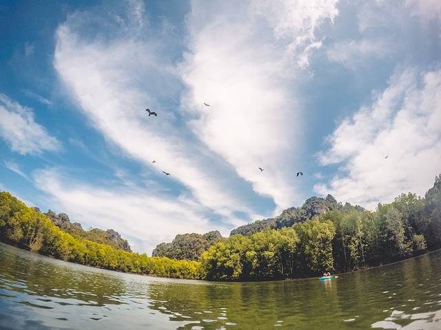 观赏完老鹰之后也就进入狭窄的原始深林,一不小心船头就话插进树木之中。向导也会一路关于兰卡威原始森林的生物,文化等。