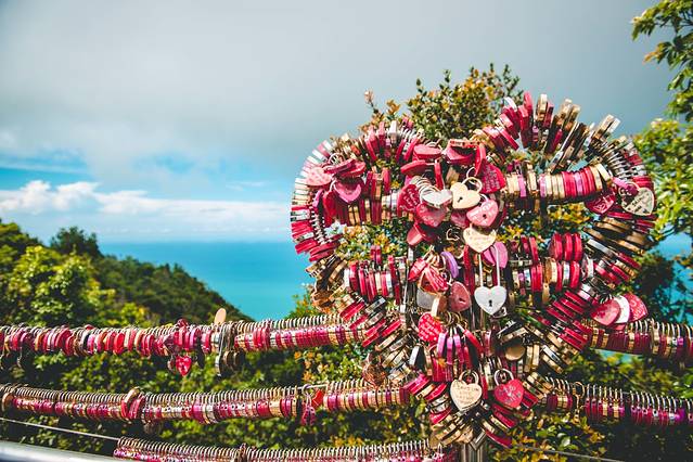 人们都习惯与把美好的情感寄托于一件事物。比如在天空之城锁上一把祝福或者属于两个人的情感之锁,四周环绕大海,或许某天回到此处还能再次找到翻看。