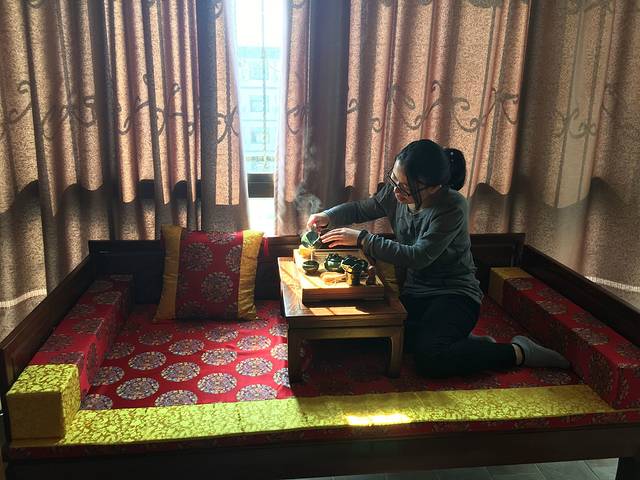 在车上认识两个姑娘,聊天得知她们已经订了客栈,待会客栈老板就会来接她们,而我们还没有订客栈,她们热情地邀请我们一起坐车去她们订的客栈看看。来接我们的是一个气质优雅的老板娘,不是两个姑娘旅店的老板,她们老板有点忙就请隔壁老板娘帮忙接一下客人,嘻嘻,感觉互帮互助的民风挺好的。通过在车上的聊天才发现我们俩误打误撞省了一笔钱。如果我们现场找客栈,就必须经过景区的第一道大门,那我们就需要买门票100元/人,否则我们不能进去,但是进去住宿后跟老板买景区门票才需要50元/人。第一道大门里面住着本地人,游客进去是需要门票的,而老板娘开着本地浙F的车进去,保安是不会拦截的。我们跟着那两个姑娘到她们客栈看了一下,具体的客栈名字我倒不记得,也许是客栈特色不吸引我。我们到老板娘的民宿看看,老板娘很热情地带我们看每一个主题房如:小清新、榻榻米、欧式、中式,我们从2楼看到5楼,最终被一间中式布置的房子打动,立即决定住下来。房子有个阳台,拉开窗帘,暖暖阳光撒入。本着体验后浓浓满意的心,推荐美丽老板娘的民宿“澜舍”,在去哪儿网上可以预订,价格实惠。