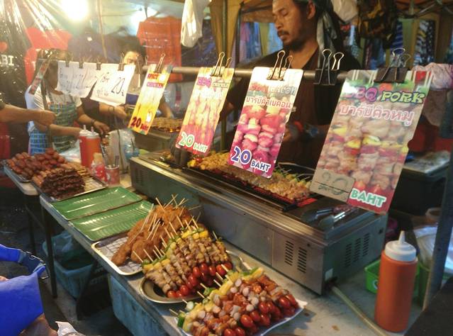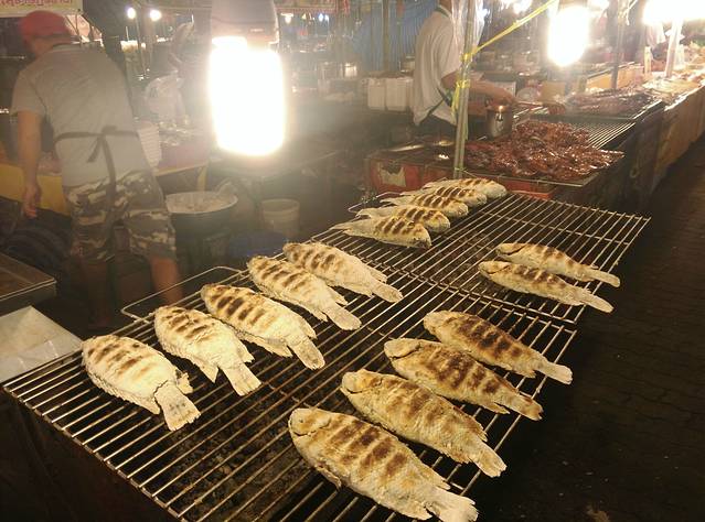 甲米虽说是旱季,但是傍晚容易下雨,下了一场大雨,晚上跑到镇上的普通夜市转了转。这边的夜市每天都有,品种不多,但够吃,晚上被那只鸡撑到了,啥都吃不下。。