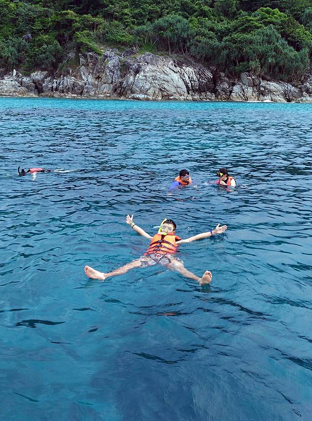 今天定的蛋岛半日游诶,也是包含浮潜的,含接送的。蛋岛淘宝的价格是在109的好像,现在可能也涨价了,特别适合亲子游,因为没什么特别多的娱乐项目,主要是喂小鱼,今天又碰到了昨天一起玩的一家子,西安人,很朴实~感觉自由行遇到的人都好好~今天晚上的机票回上海,所以只能定半日游,下午还得往甲米赶呢~各位如果时间真有多,可以考虑先去皮皮岛,再去甲米,皮皮岛上可以住宿,就是普吉和甲米中间的一个岛~