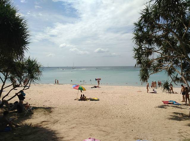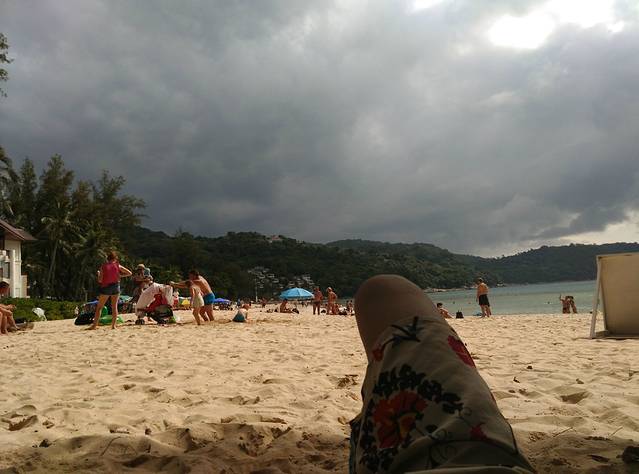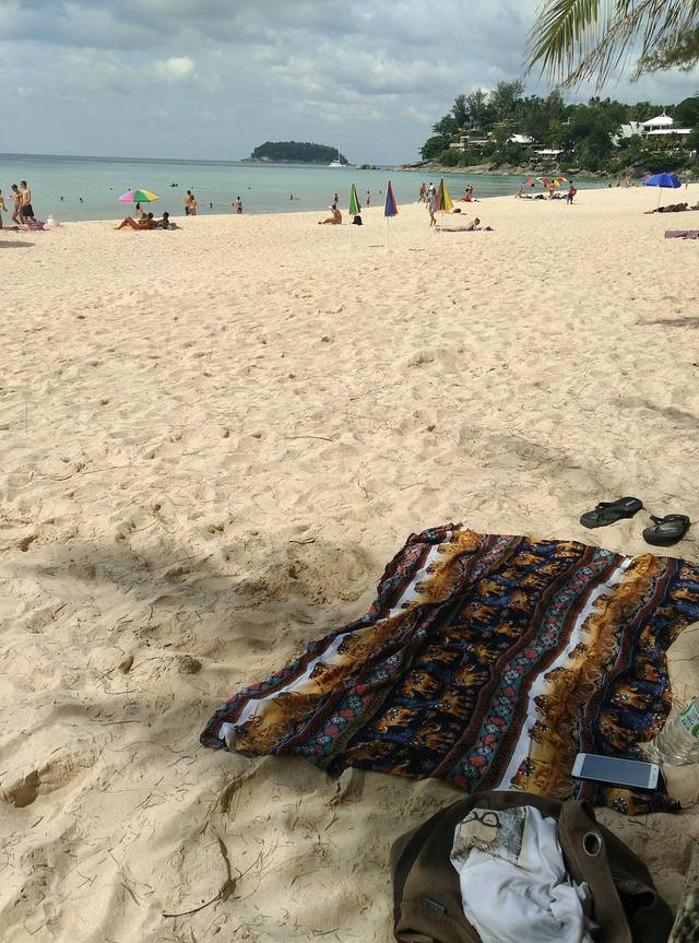 租伞好像是100B,不知道有没有时间限制。卡伦有点晒,想想还是拖着我上次在曼谷买的桌布去卡塔寻一片清净之地。。