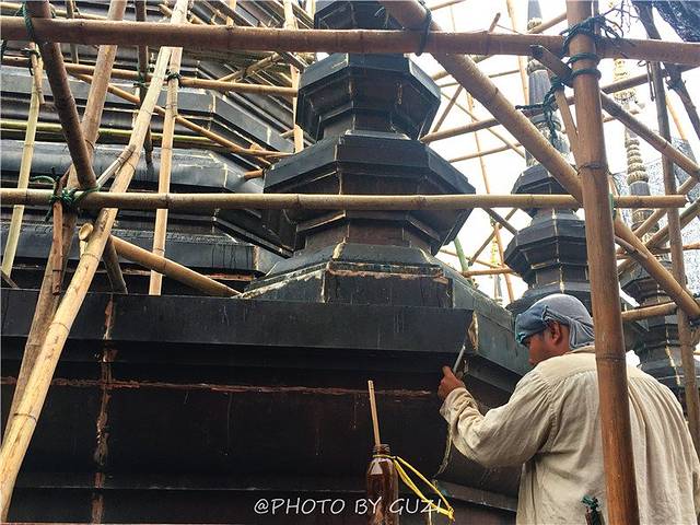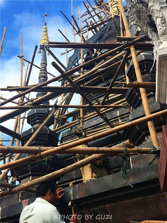 门口有双条车进出,里面停满了摩托车,这是一个值得一逛的寺庙。大门进去正对的就是大殿,人太多,没放图。大殿后面的残破古塔才是主角,绕过大殿来到它的面前,瞬间被震撼,也许你看过攻略,早就知道它的庐山真面目,但真实地站在它的面前还是会有点小小的激动。
