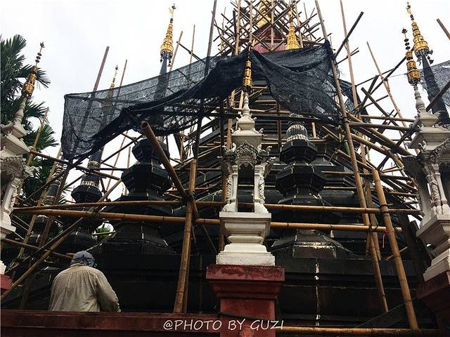 这里曾经是铸佛场,专门为寺庙铸造佛像,因此得名。相比其他金碧辉煌的寺院殿堂,潘道寺显得尤为古朴典雅。大僧院的外形颇具气势,雕工精致的灰泥装饰门窗,古色古香,还有200年前的贝叶经以及收藏古经的柚木柜子,都值得细细欣赏。寺庙后面的佛塔还在修建中。
