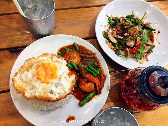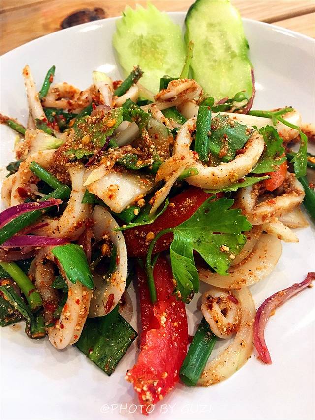 去素贴山的时候,在清迈大学对面街上吃的,还不错。鱿鱼新鲜,香料足。