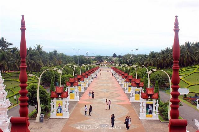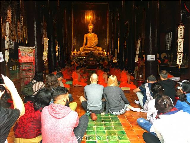 布帕兰寺(Wat Buppharam)最大的特色是庙宇呈亭台楼阁样式,金碧辉煌、宁静圣洁。建筑细节上精雕细琢,每一个屋檐上的勾角、每一处门廊上的雕花、每一个佛像上的饰物、小到悬挂佛塔上的风铃,都是精致入微、异常出彩。作为2013年电影泰囧的摄影地点,很是受到咱中国人的欢迎呀。