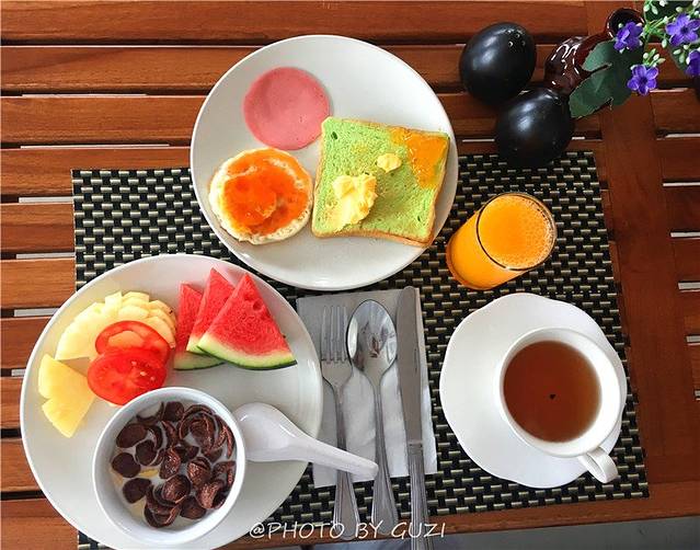 酒店内的自助早餐,比较丰盛,选了合口的几样。泰式炒河粉之类的,在外面吃了更好吃的~~还是喜欢这样简单、干净、颜色丰富的早餐。一天美美地开始。