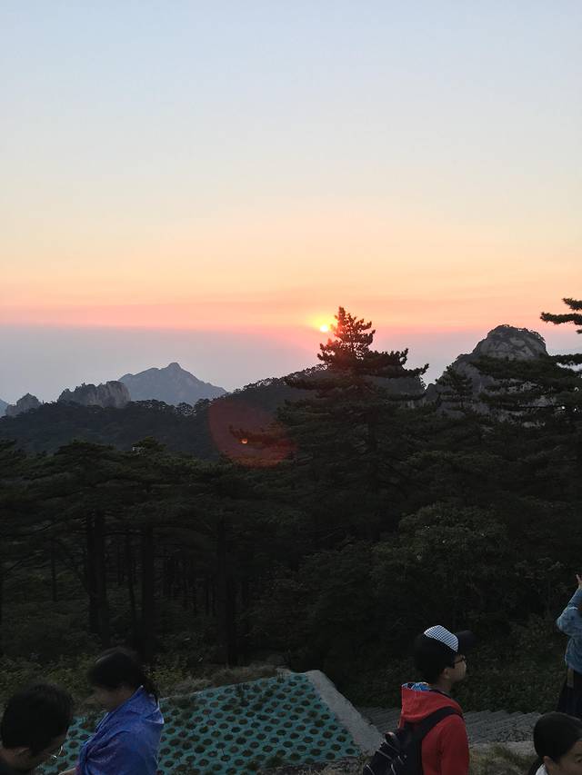 第二天:从慈光阁开始进入黄山,经过天都峰——迎客松——一线天——光明顶——白鹅山庄住宿。(光明顶看的日落)