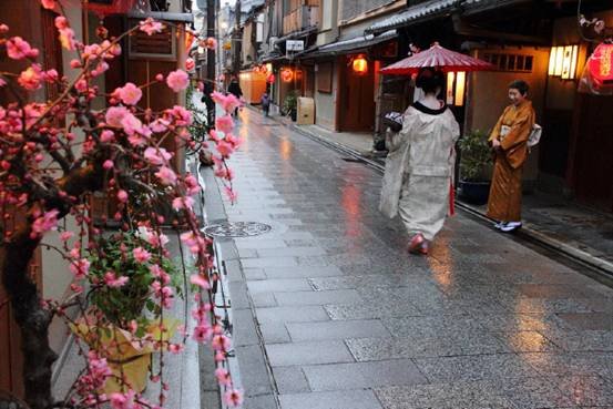 可以看打到身着盛装的艺妓,