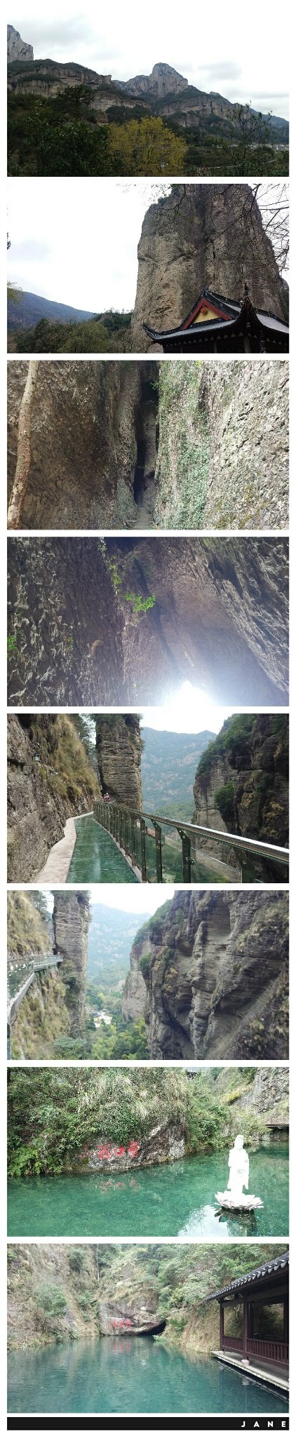 大龙湫50块门票就看一个瀑布,好吧,第一个点,还是有些许失望的,整个景区逛完还没花半个小时,不是沣水季,瀑布也没多少水流量。反正觉得没有太大特色,但是路上经过的马鞍岭隧道倒是挺喜欢的,除了景区我们居然走了一个小时去灵岩景区,是不小心的决定,还好两个人的战斗力强,这里建议大家坐车一站一站先去方洞走走,这么多个点,就觉得方洞比较值得去,我们是最后去的,所以,下文会更详细介绍。