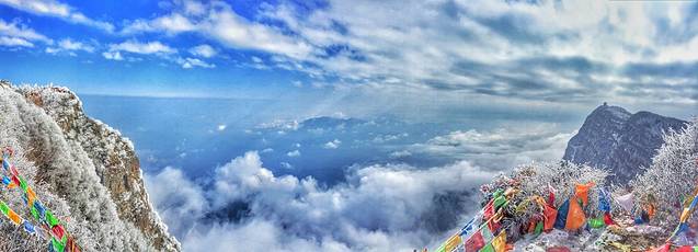 走过雷洞坪,坐索道上金顶,山下还是雾茫茫的一片,到了山顶豁然云开,终于告别雾霾看见蓝天了