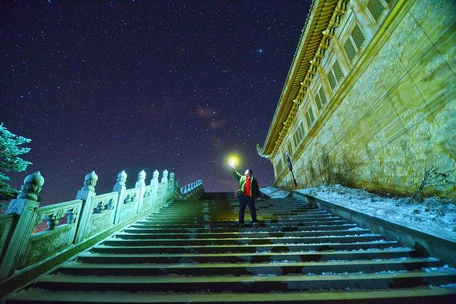 吃完饭后大家商量着凌晨3点去山顶拍日出,说的时候大家汹涌澎湃的,结果5个房间最后只有1个房间起来了,凌晨3点零下十几度拍出的大片