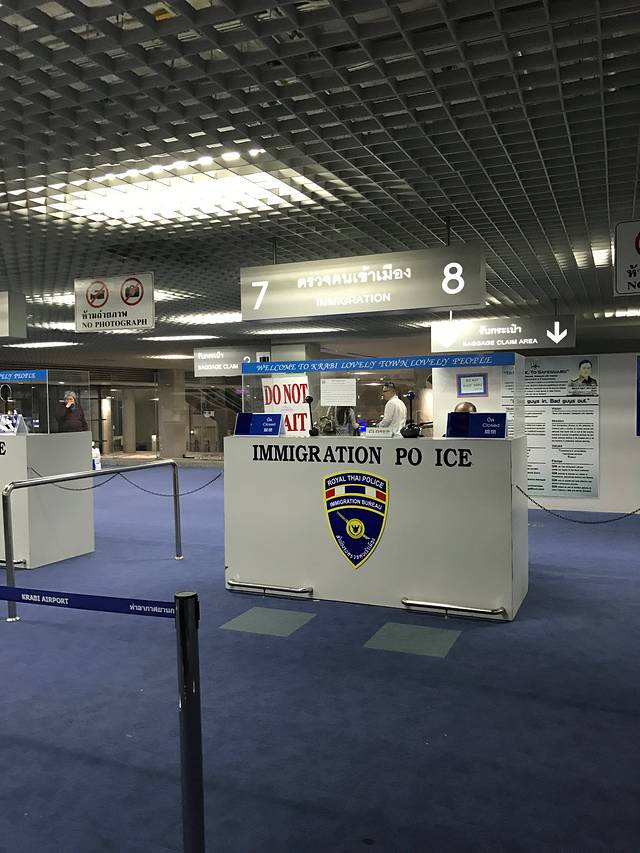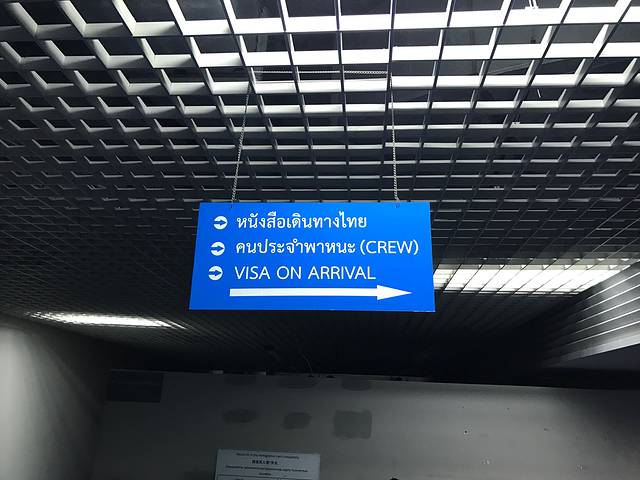 办签证指示牌,甲米机场很小,很快就走出去了,标示牌也很明确,看不懂就随着人群走没错啦