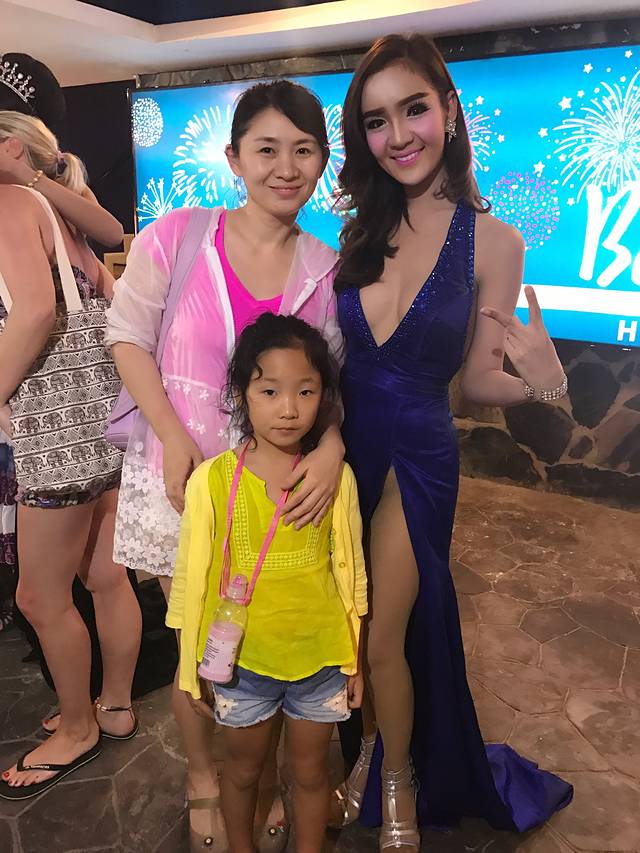 演出结束你可以找你喜欢的人妖照相,妞妞比较喜欢她,说长得像我😢照相是100泰铢一个人哦 我俩合影就是200,找了另一个shemale帮忙照的,也给了他100