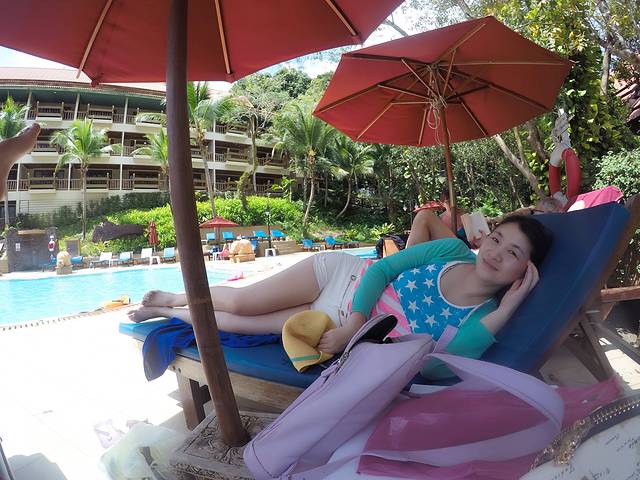 我们定的酒店是在携程网订的,查的位置和环境还有评价,因为带孩子度假一定要有游泳池、离海滩近,因为是带孩子自由行,所以一定要吃东西、买东西都便利的位置。