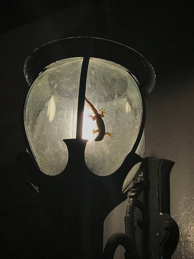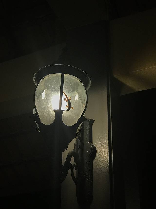 酒店的壁虎很多,尤其夜晚走廊灯上面,每个上面必有一只。