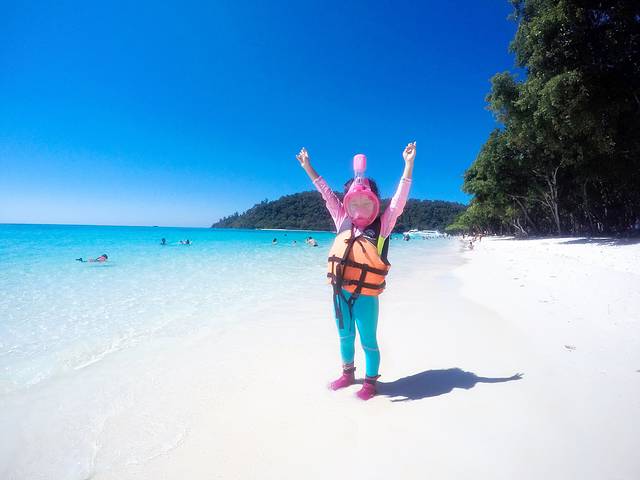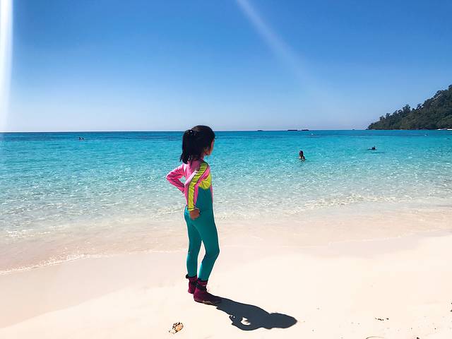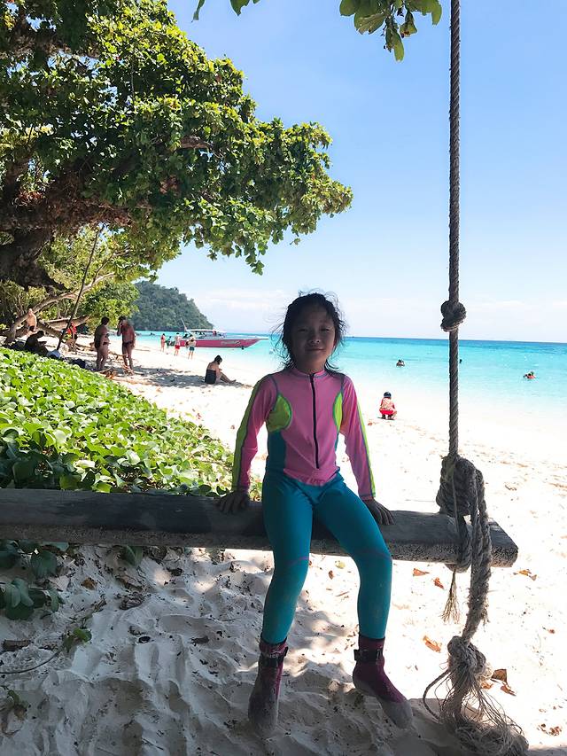 泰国最美的岛,没有之一,甩皮皮岛几条街,这里的沙滩是白砂糖一样的白色,海水清澈透明,这里的海真的有七种颜色,实在是太美,游在海中特别梦幻的感觉哈哈。