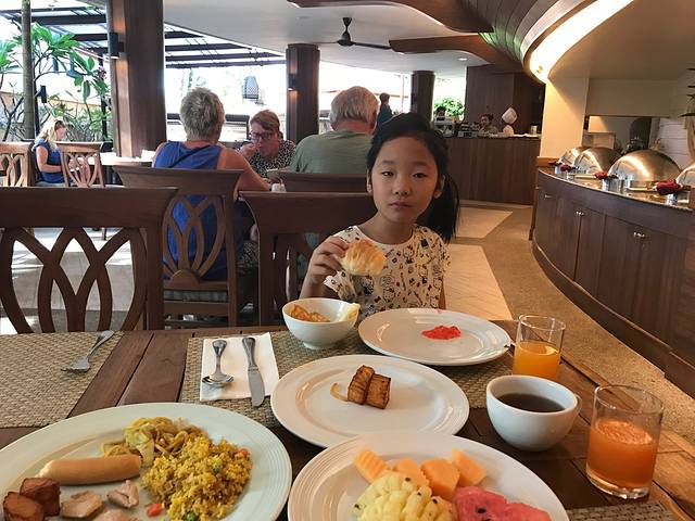 酒店自助早餐非常丰盛,每天的菜和主食都是换样儿的,水果和果汁也会换品种,果汁都是鲜榨鲜果汁,毕竟是热带水果丰富呀,值得一提的是大碗装的大果粒酸奶,实惠又好喝!每天一大碗!