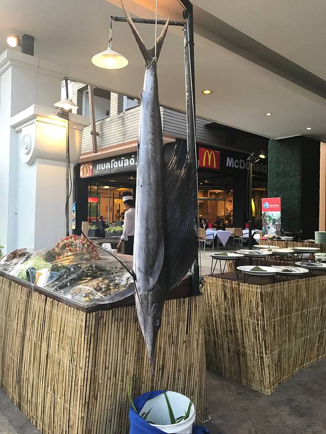 餐厅挂了一只大鱼,照相的时候旁边有个欧美人在看手机,没注意到我们在拍照,我等了一会儿只好跟她说了,她立刻说oh my God!说了一堆道歉的话,搞的我也很不好意思,