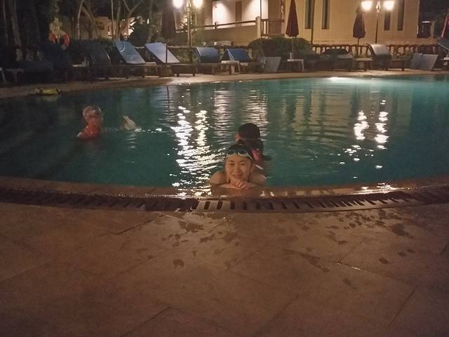 夜游,酒店游泳池24小时可以来玩,但晚上只有我们,欧美人喜欢大太阳晒肯定不会来夜游的