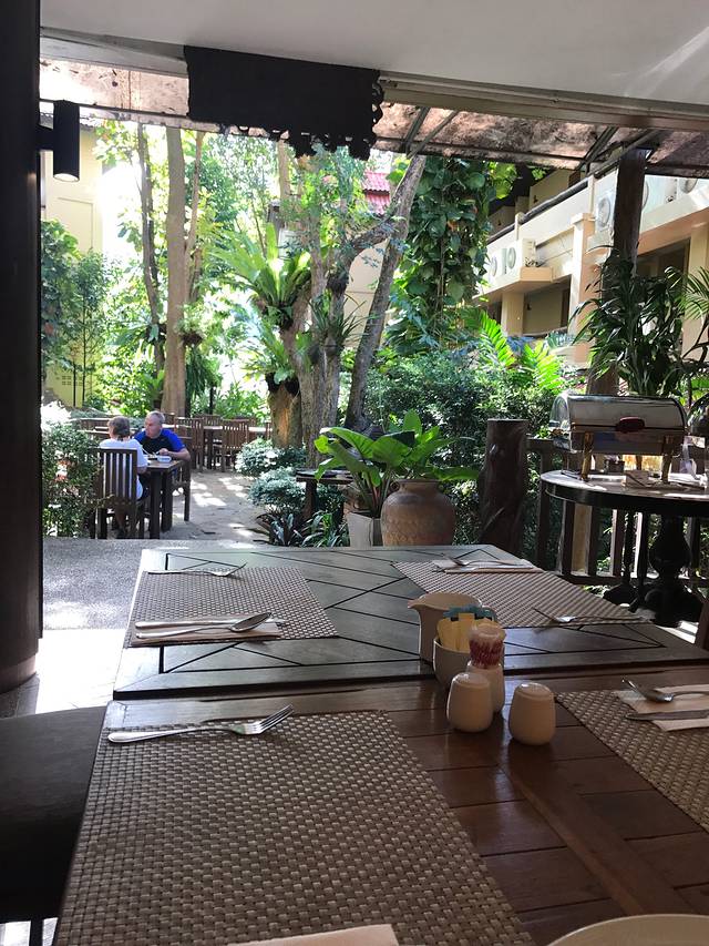室内外是联通的,在哪里吃都可以,外面也不热,大型植被遮阴很好