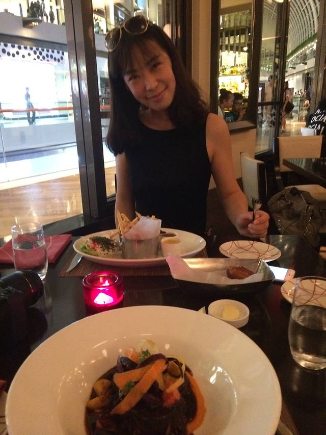 在金沙购物中心吃烛光晚餐,牛排。