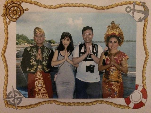 上船后与穿着民族服装的帅哥美女合影,人民币¥35元,上船的时候照,回程的时候就给洗出来了。