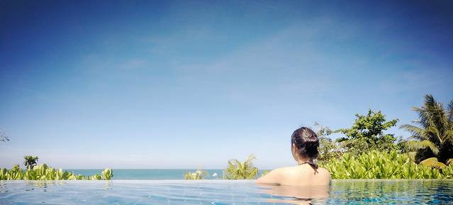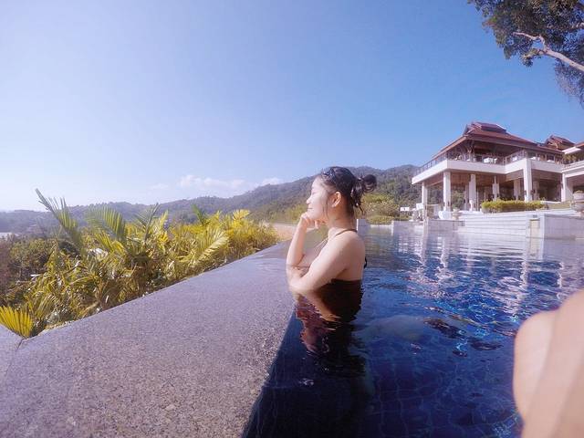 酒店有两个无边泳池