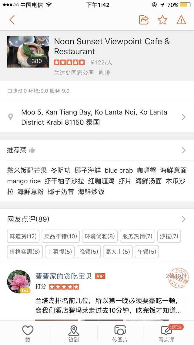 比如我去了最热门的悬崖moon餐厅.在前台订车6:00出发9:00回 来回只需要200泰铢,对于两个女的来说很安全.