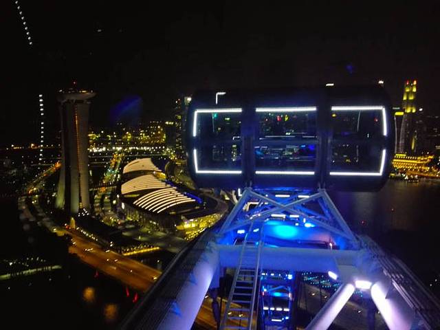 轮体很宽敞,中间有两排坐位可以住,30分钟左右的时间一圈,在里面的感觉是比较慢很安全的。换一种角度看这个城市,夜色迷人,当时一直在想,居住在深圳多年,已经习惯了,如果从高空的角度去看,深圳的美应该不输新加坡的。可是,都是因为习惯了,所以才会忽略身边的美好。因此,才有人说:旅行是从自己呆腻的地方,到别人呆腻的地方。不能赞同太多。