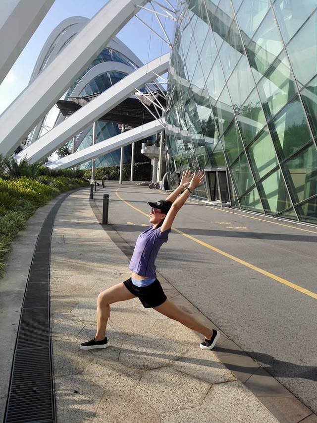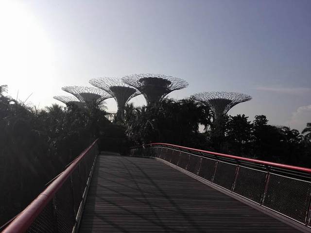 新加坡的天异常蓝,美美的睡了一夜觉,一大早起,去滨海湾公园散散步,顺便跑个步,十分美好。酒店有直通花园的一条空中步道,新加坡的绿化着实让人惊叹,干净整洁,还没有蚊虫。