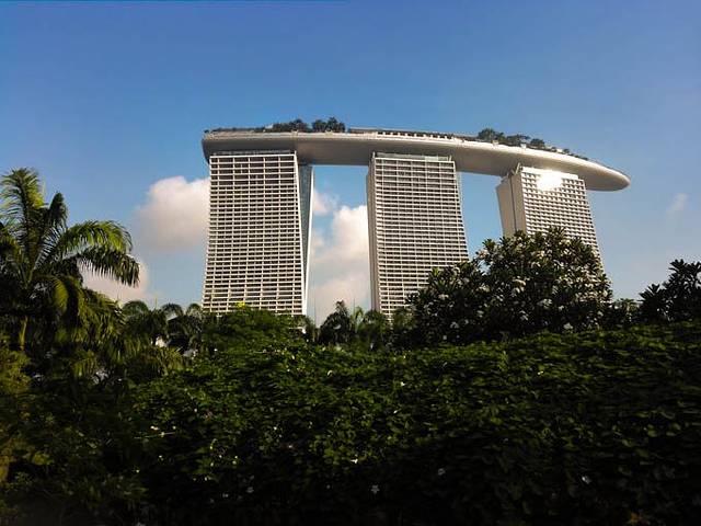 早闻号称当今世上最昂贵的酒店的新加坡滨海湾金沙酒店,是美国拉斯维加斯金沙集团在新加坡耗巨资打造的五星级酒店,由三座连成一串的酒店大楼组成,57楼有世界最高的无边际泳池,有360度俯瞰新加坡景色的空中花园,有拉斯维加斯风格的赌场casino(进出都要检查护照),是集奢侈品购物、饮食、娱乐、休闲与一体的综合性度假酒店。亲身体验了一把,果然物有所值啊。