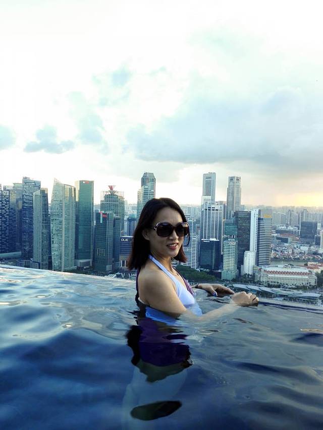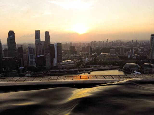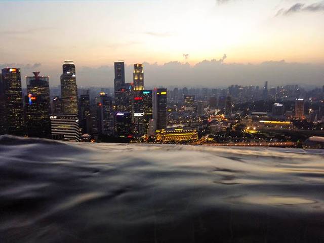 在无边泳池另一边还有温泉按摩池,有吃饭喝酒的餐厅。在金沙酒店住的几晚,每天傍晚,从57楼无边泳池俯瞰新加坡,看夕阳西下,看灯火阑珊,心都是醉的。