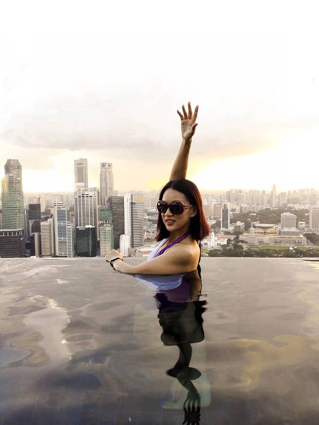 所以,选择在金沙酒店住的大部分人都是冲着57楼的无边际泳池来的,但是如果你是要在泳池游泳那可能就out了,来自全球的各国游客基本上全在拍拍拍凹造型或者找个躺椅手拿一杯香槟,悠闲自得。