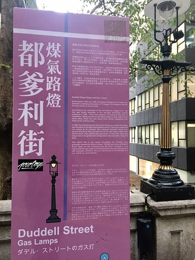 都爹利街石阶约建于1875至1889年间,为香港法定古迹。都爹利街虽然只是一条位于高楼大厦中的小巷,但是在小巷的尽头却隐藏着两样有过百年历史的古迹──石阶及煤气街灯。煤气灯晚上六时开灯,早上六时关灯。由于这里的石阶与路灯甚具特色,是很多电影的拍摄地,也是游人拍照打卡与及硬照的热门地点